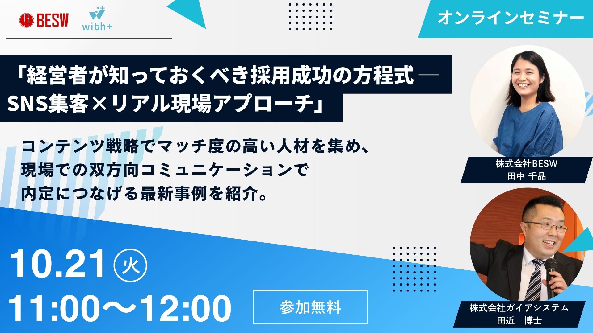 「経営者が知っておくべき採用成功の方程式 ─ SNS集客×リアル現場アプローチ」コンテンツ戦略でマッチ度の高い人材を集め、現場での双方向コミュニケーションで内定につなげる最新事例を紹介。