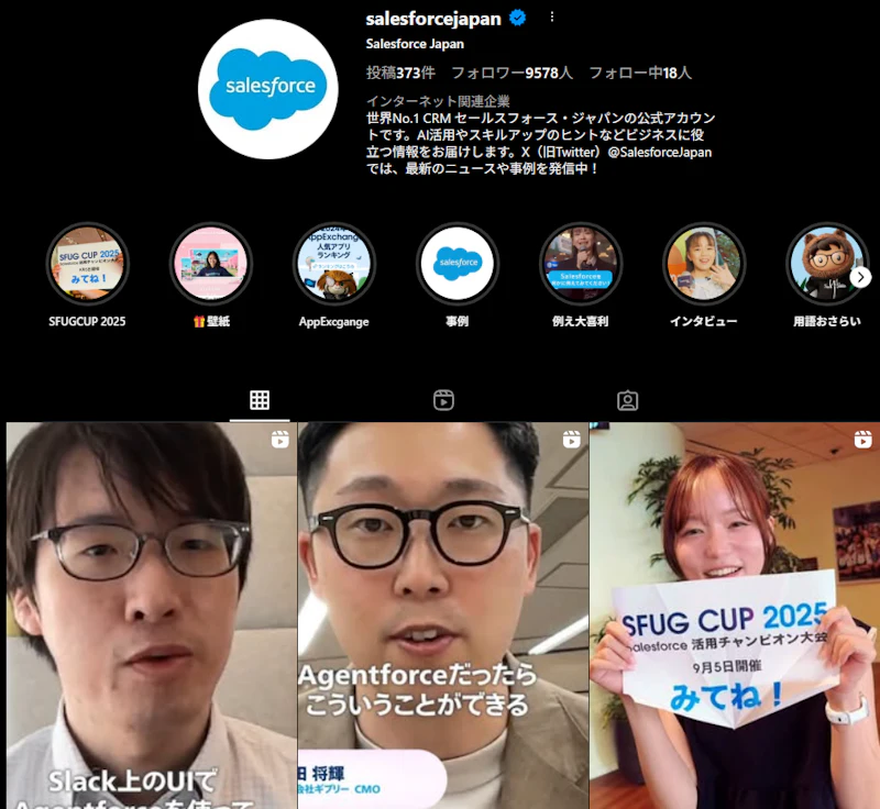 Salesforceの事例詳細: 同社は製品説明に加えて、社員の働き方やオフィス文化を発信。「この会社なら安心して任せられる」という感情的な信頼を醸成しています。