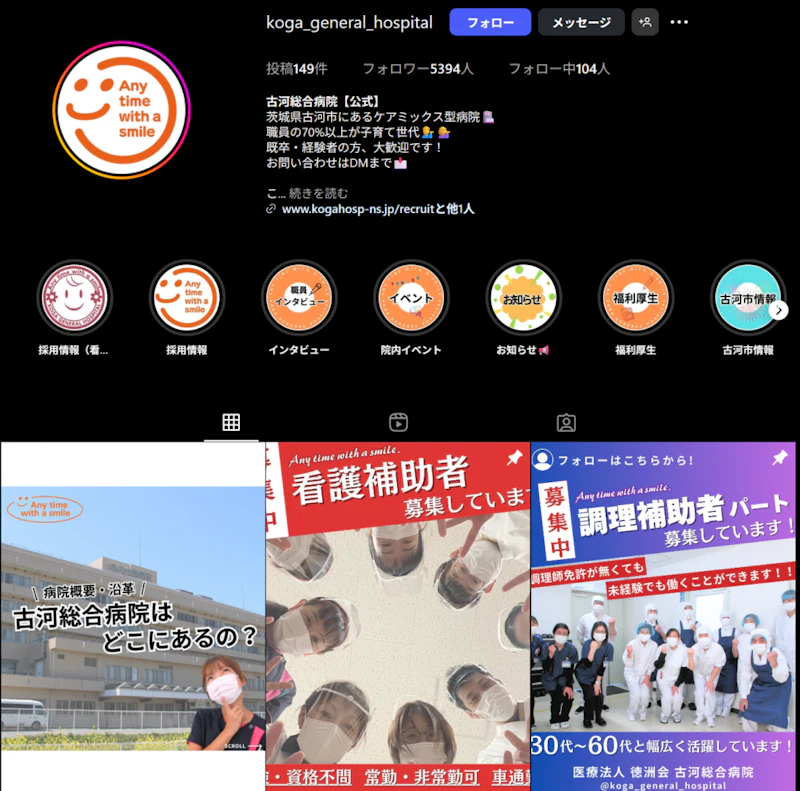 Instagramでは病院の「雰囲気」を伝えることに強みがあります。スタッフ紹介や院内イベントの写真を発信することで、求職者に「働きやすそう」「雰囲気が良さそう」と感じてもらえる採用ブランディングにつながります。ただし、写真や動画の質が求められるため、発信コンテンツのクオリティを担保する工夫が必要です。