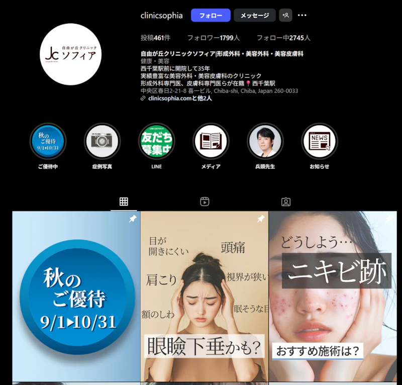 美容医療を提供する自由が丘クリニックソフィアは、YouTubeとInstagramを組み合わせた情報発信により、患者の不安解消と来院率アップにつなげています。Instagram経由でYouTubeや公式サイトへ流入が増加し、来院前に十分な情報を得た患者が予約に至るケースが増えました。