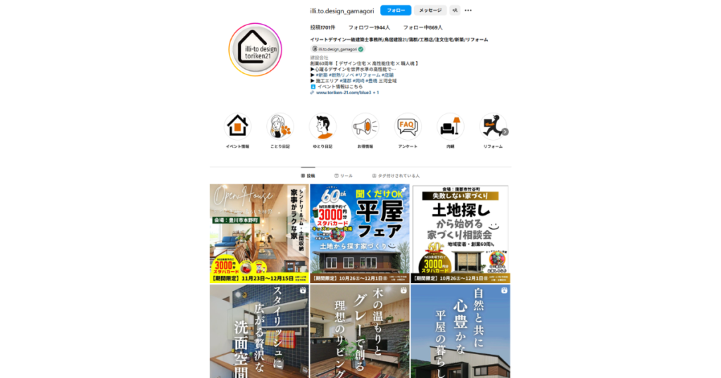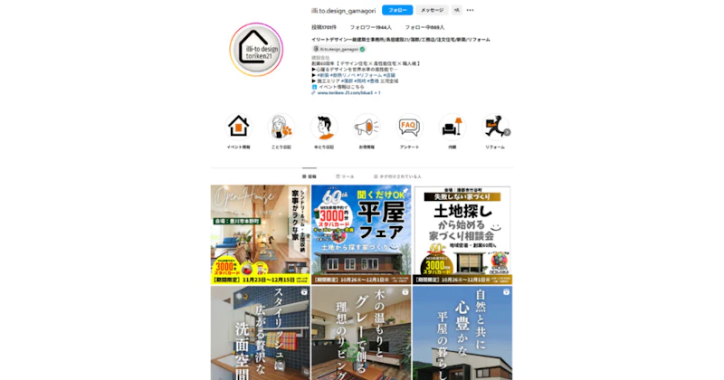 一級建築士事務所のイリートデザインは、投稿画像の工夫でInstagramのデザインからの問い合わせを増やしました。