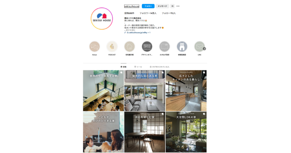 積水ハウスは大手ハウスメーカーで、Instagramでは10万人以上のフォロワーがいます。