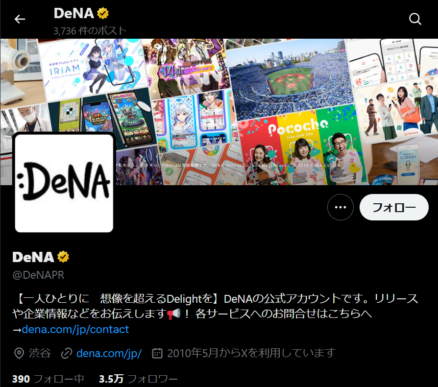 1. 株式会社ディー・エヌ・エー【X(旧Twitter)】